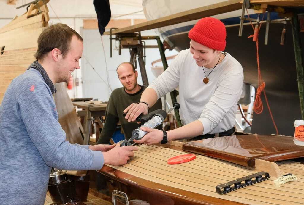 Dennoch sei der Bootsbau auch heute noch extrem vielseitig, findet Timmerherms Auszubildender Paul Winter: „Der Bootsbau ist einfach genial, wenn man von allem etwas sehen will“, erklärt der 23-Jährige. Bootsbauer müssten eine enorme Bandbreite an Materialien be- und verarbeiten können: Holz, Kunststoffe, Kohlefaser, Glasfaser, Stahl, Aluminium, Lacke und Kleber. Der Innenausbau der Boote verlangt zudem Kenntnisse im Heizungsbau oder im Umgang mit Sanitäranlagen.